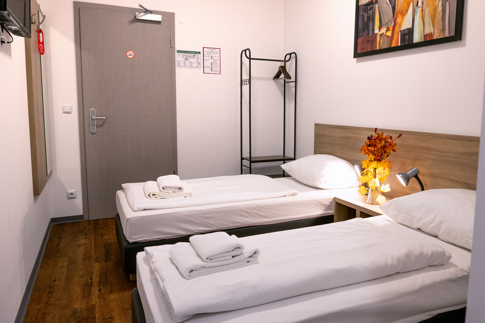 Unsere Twinzimmer mit zwei separaten Betten sind eine ideale Lösung für Übernachtungen von Freunden, Kollegen oder Geschäftspartnern. Die kostenlose WLAN-Verbindung und ein kleiner gemütlicher Arbeitsplatz bieten eine hervorragende Möglichkeit, auch im Hotel zu arbeiten. Die Zimmer der Queen's Residenz haben alles Notwendige, wie zum Beispiel Handtuchtrockner und Shampoospender.